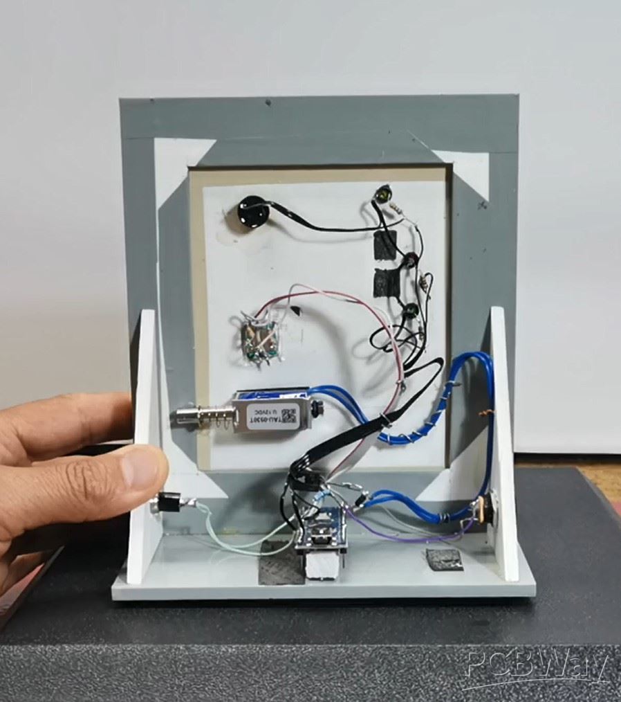 When turning on the device, a green LED lights up and we can enter the password. First, I use the default password, which is 221 (2 right, 2 left, 1 right). After a few seconds, the solenoid returns to its original state.