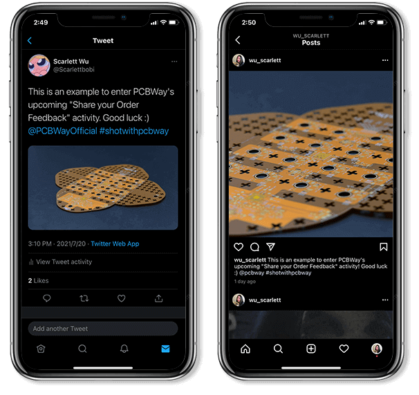 Share your order through PCBWay’s feedback function after you receive your goodies. You need to upload at least one photo of the order and add simple description.