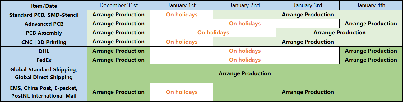 New Year's Day will come on January 1st, 2026, and the PCBWay factory will be on holiday during this period. Orders can be placed as usual and will be processed in chronological order after the holidays.