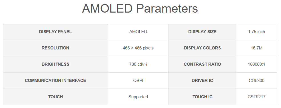 The ESP32-S3-Touch-AMOLED-1.75 is a high-performance, highly integrated MCU board designed by Waveshare. It is compact in size, onboard 1.75inch AMOLED capacitive touch display, power management IC, 6-axis sensor (3-axis accelerometer and 3-axis gyroscope), RTC chip, low power audio codec, echo cancellation circuit, and so on, which makes it easy for you to develop and integrate into the products quickly.