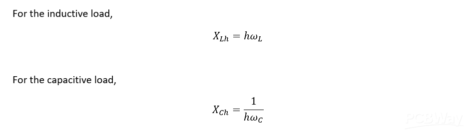 At the harmonic frequency, capacitive and inductive impedances of the power system vary according to the frequency function: