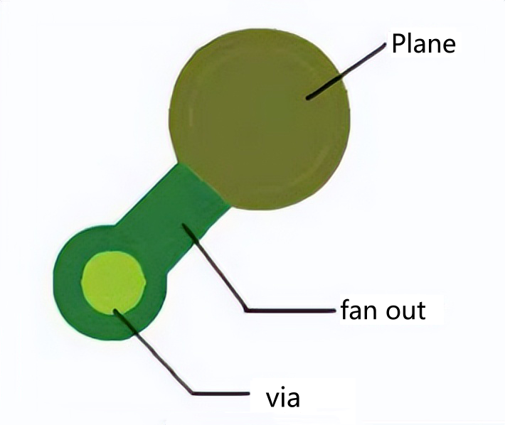 Fanout refers to the short routing from a component pad to a nearby via, as shown in the figure below. In PCB layout—especially for BGA designs—fanout, pads, and vias play a critical role.