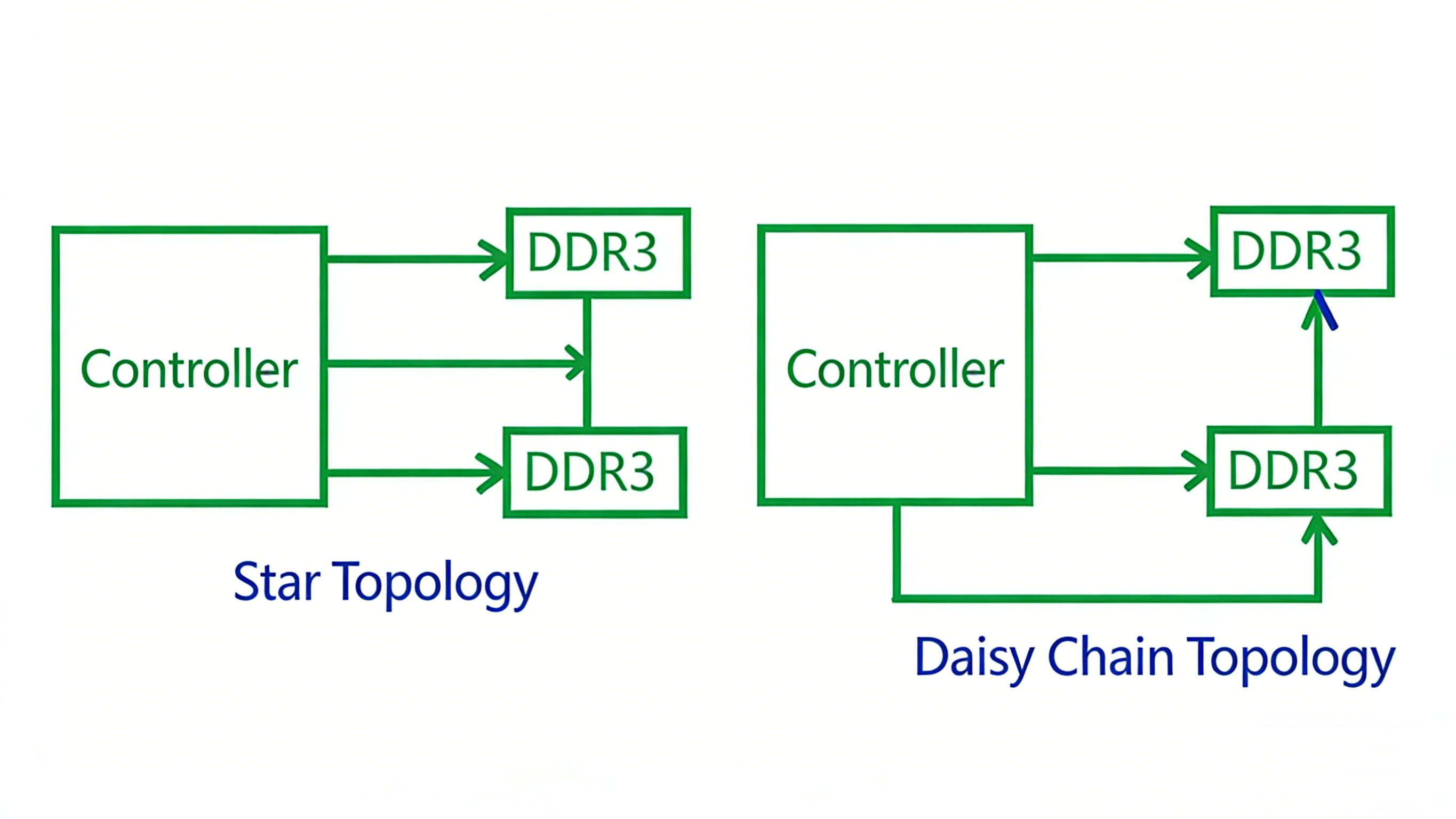 Topology selection mainly affects the routing of address, control, and clock signals and does not change the point-to-point nature of data signals. In practical DDR3 designs, Fly-by topology is commonly preferred due to its good compatibility, flexible timing adjustment, and relatively easier routing.