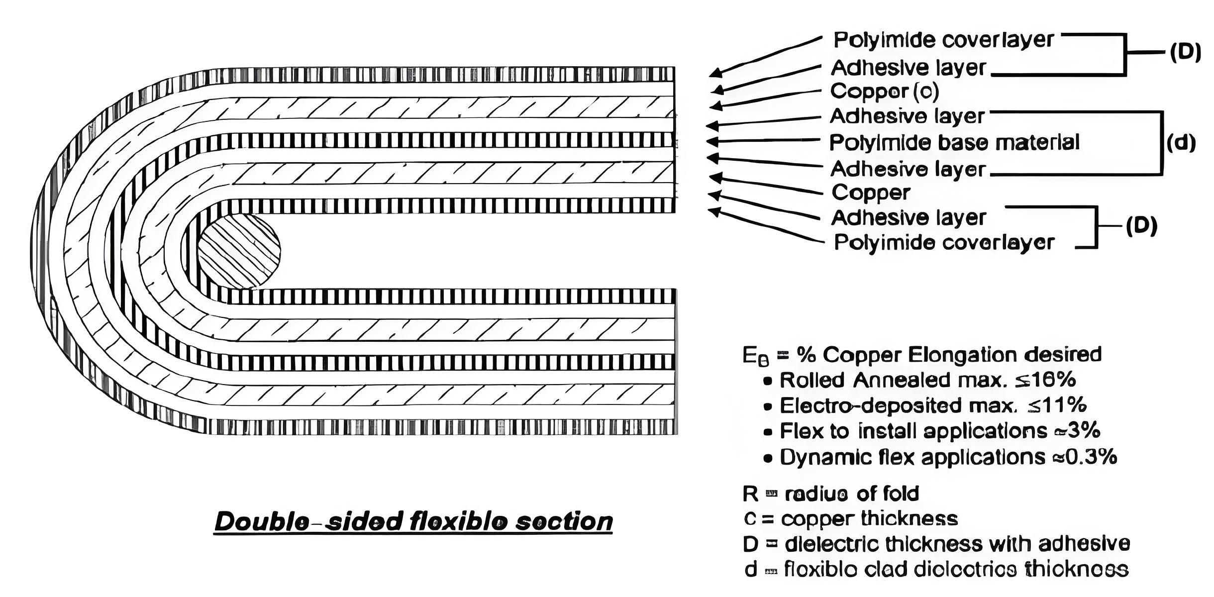In real-world flex pcb design, it is always better to increase the bending radius rather than reduce the safety margin.