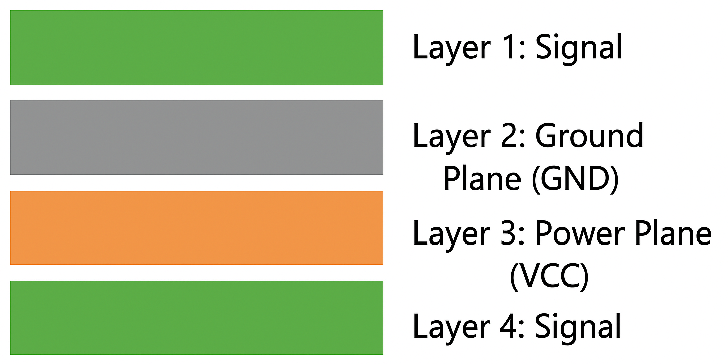 The ground plane acts as the system’s “earth” — a universal reference point for all signals. It must be the most stable and complete plane in your PCB stack-up.