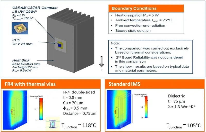 Proper LED PCB design and layout can significantly reduce thermal resistance and improve reliability.