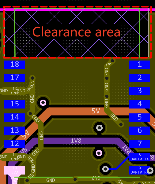 Placing RF traces or components close to switching power supplies or high-speed digital circuits can couple switching noise or digital harmonics into the RF path. Out-of-band noise in the receive path can reduce sensitivity, while in the transmit path it may cause spectral emissions beyond limits.