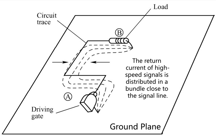 (High-speed return signals flow along the path of lowest impedance)