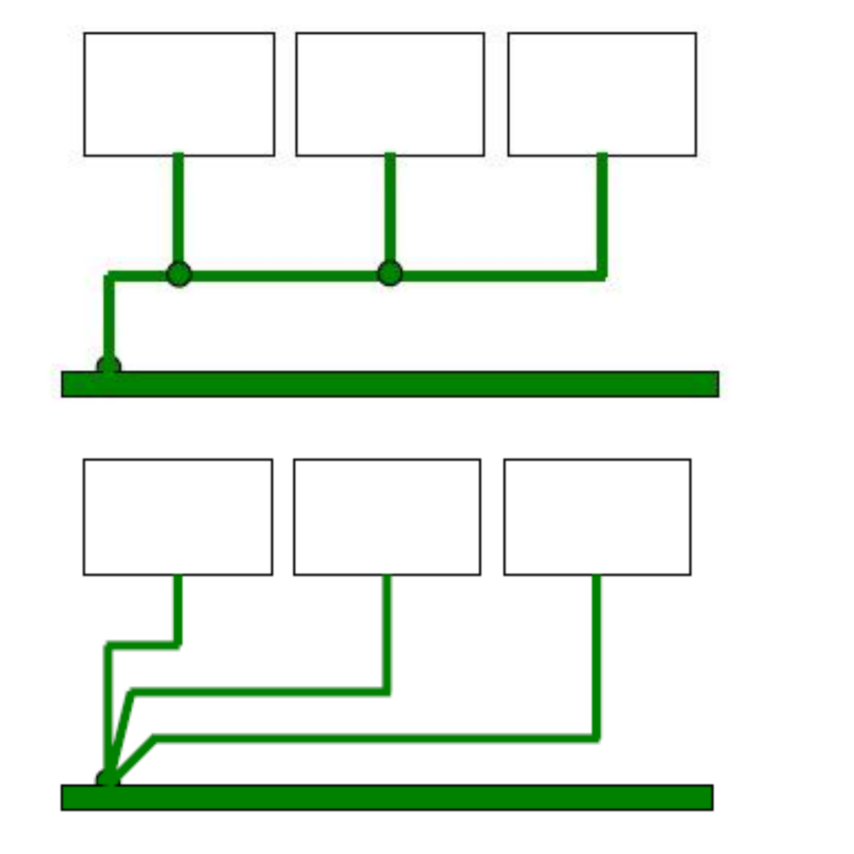 Issue: Ground traces are often treated casually—too thin, too long, or connected in series—under the assumption that “as long as it’s grounded, it’s fine.” This leads to voltage drops along the ground path, causing ground potential differences. The result can be ground bounce, MCU resets, reduced ADC accuracy, and unstable communication.