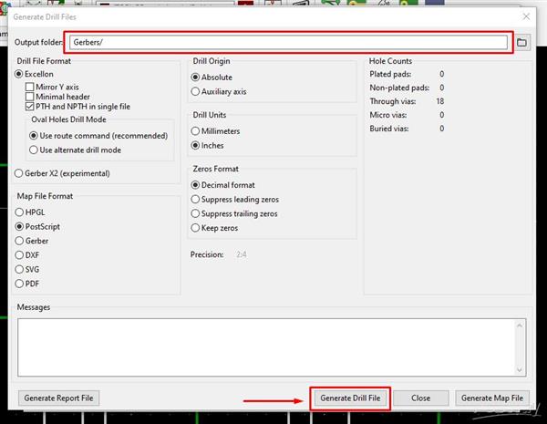 Now I'll explain how to export the Drill files. Just click on "Generate Drill Files", in the screenshot shown below I show where the button to select is located.
