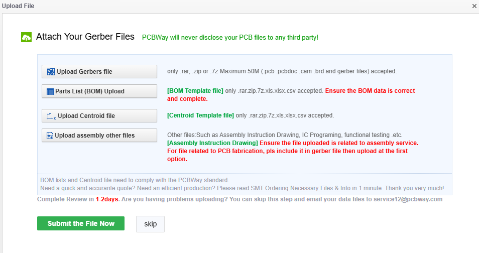 Once all required files are uploaded, PCBWay will review the information and provide a detailed quotation.