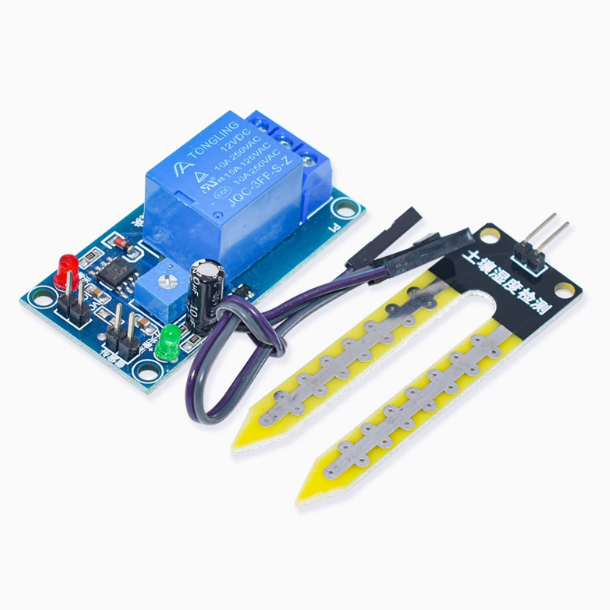 2. The product can control the humidity of the soil in a wide range, and adjust the corresponding threshold through the potentiometer. When the humidity is lower than the set value, the relay will be activated, and when the humidity is higher than the set value, the relay will be disconnected;