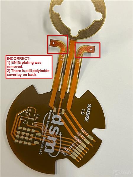 We needed an copper tab exposed on both sides for soldering purposes. I had requested that there be no polyimide and no stiffener in a certain region, so that it would be a strip of copper only. My re...