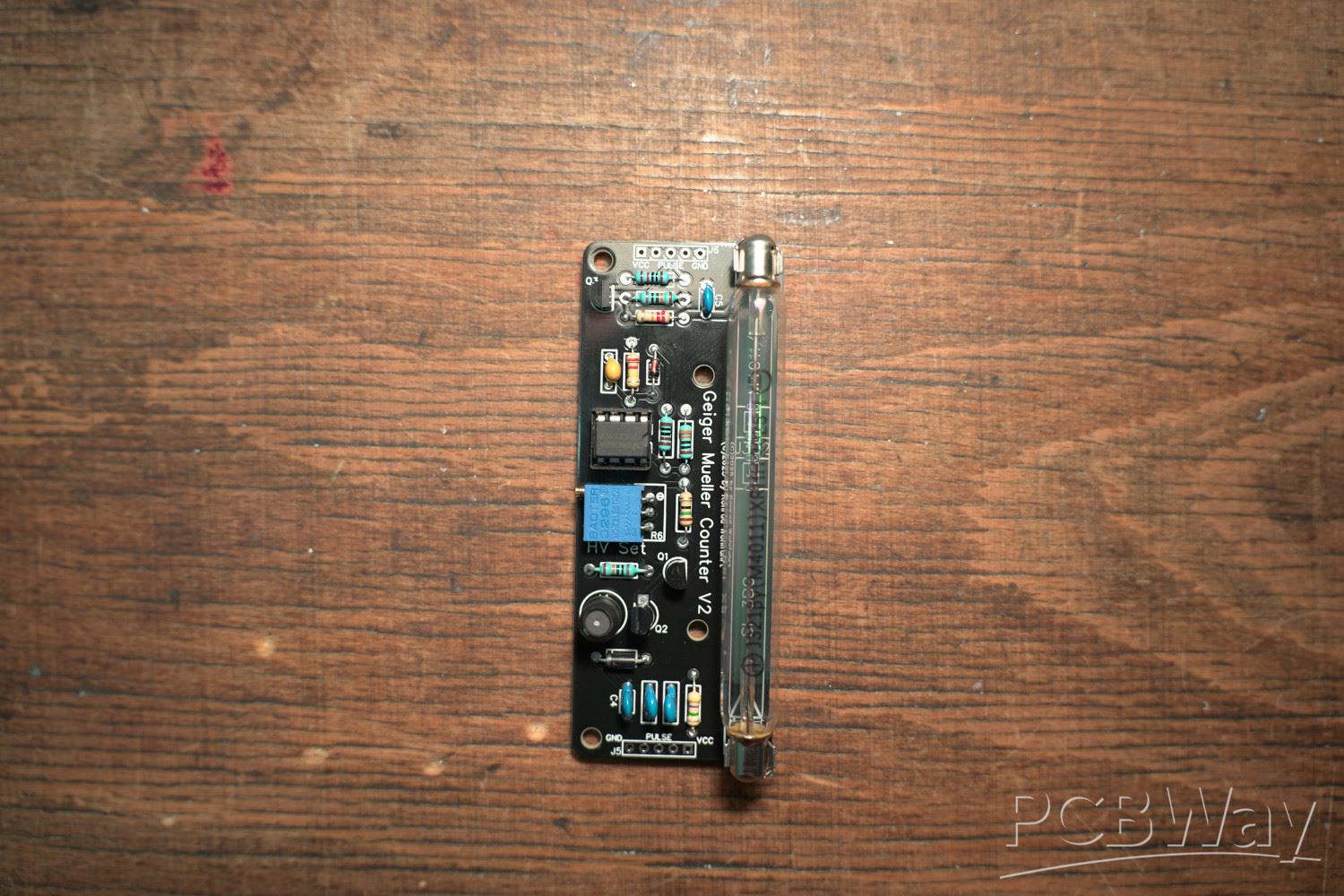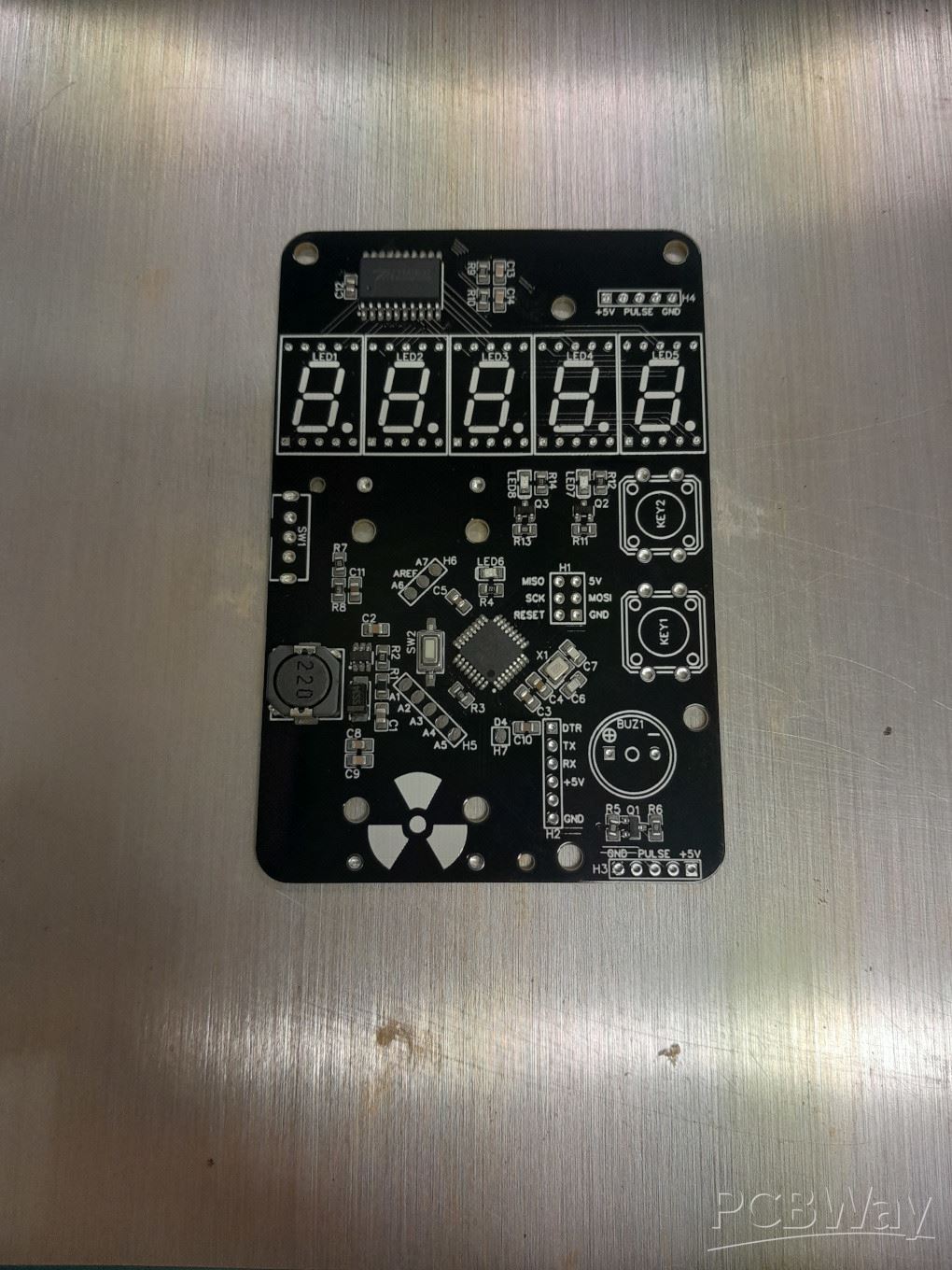 The main board of the geiger counter connects to the HV circuit and keeps track of the counts and calculates the uS/h value. The silkscreen is great and all of the pads were easy to popluate with sold...