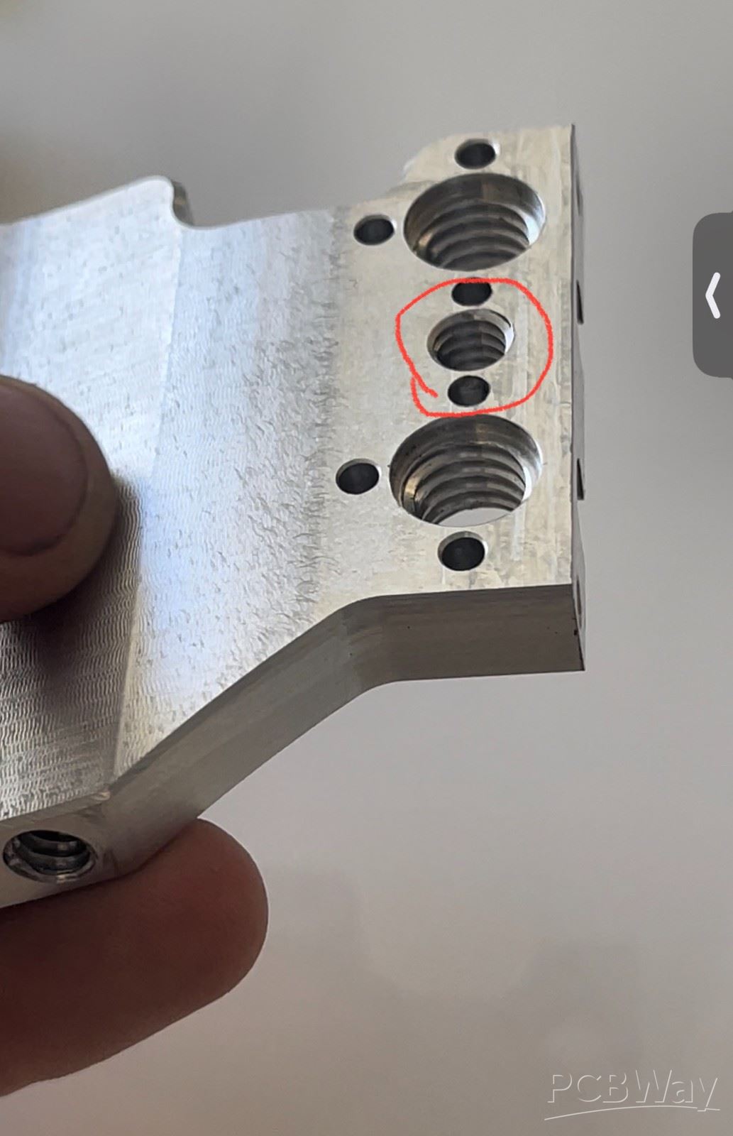 This part turned out very nicely. The only problem is that It doesn’t look like the ¼-20 holes have chamfers, see the attached photos for reference. We are hoping that we can resolve this problem for future orders of this part.