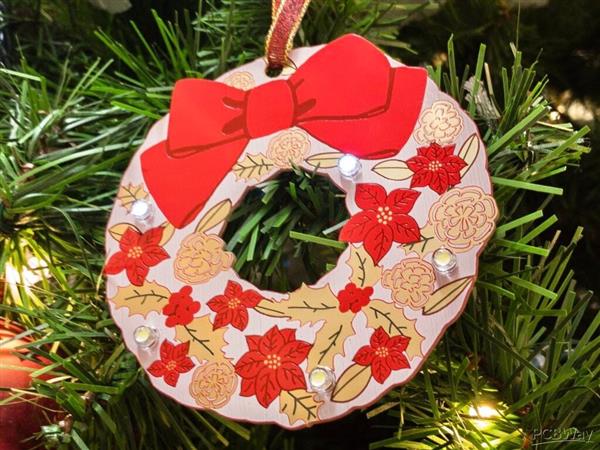An electronic work kit for Christmas wreaths with sparkling LEDs. Since there are few parts, it can be easily completed. It would be nice to decorate the entrance or Christmas tree. Due to the power saving design, the LED can keep shining for 2-3 weeks. About 10 cm in diameter. There are white type and brown tap as the board color.