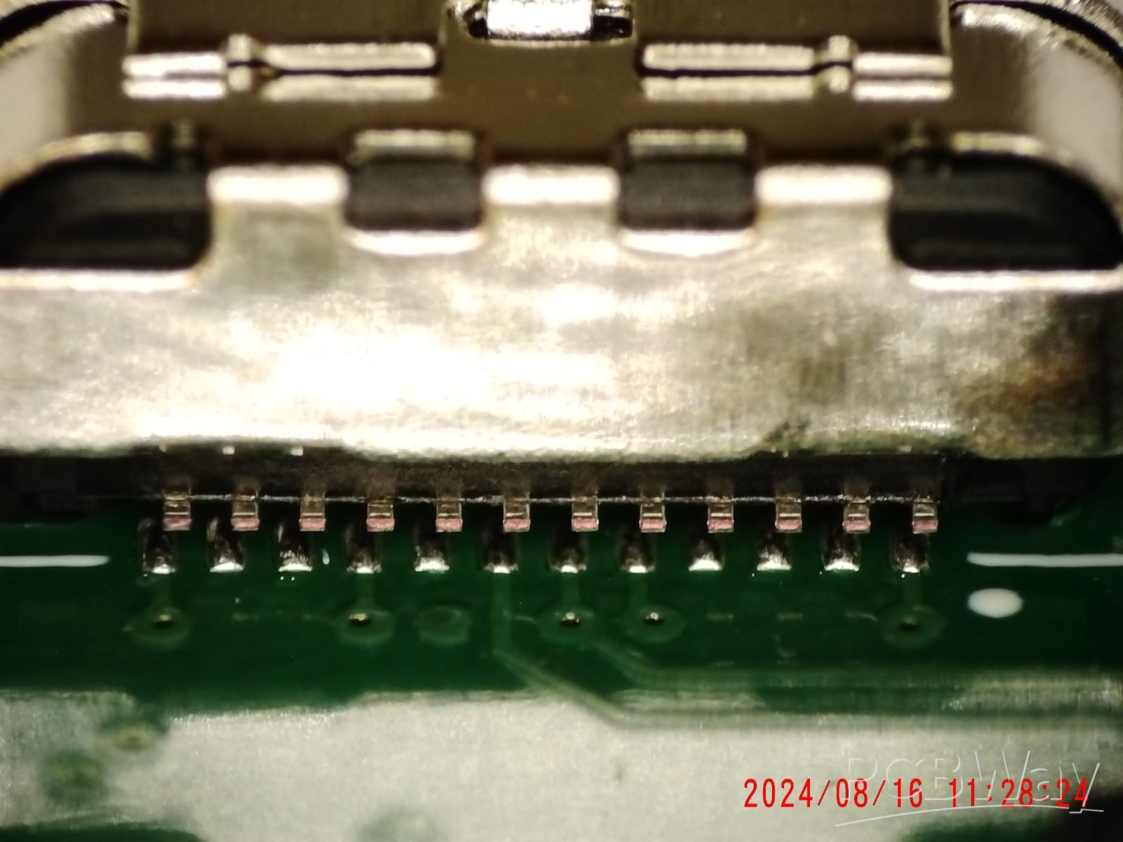 On 2 PCBs the USB connectors are not fully soderd to the PCB. The back row of contacts are "flying" over the PCB. See pictures