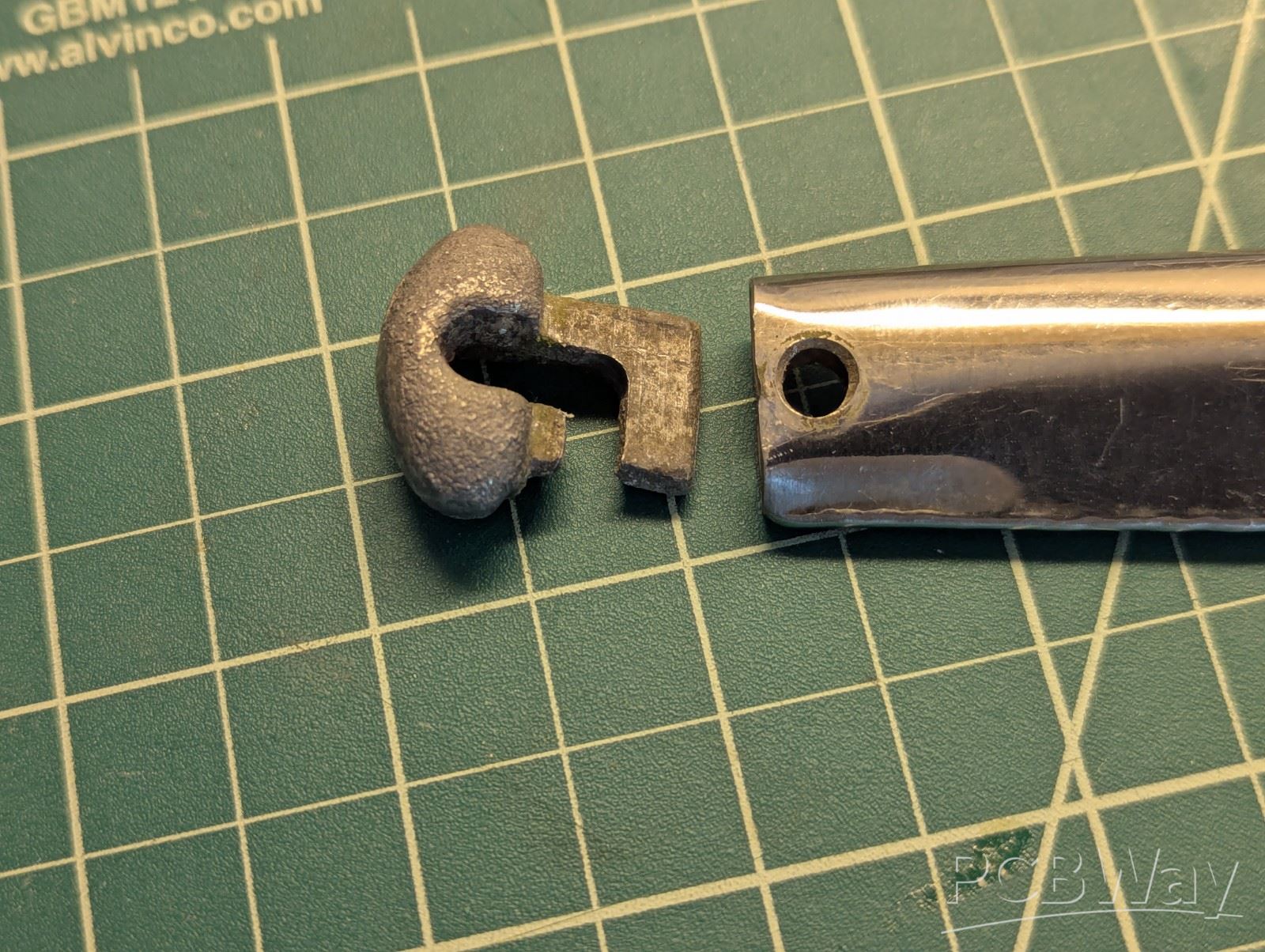 Spreader tips capture standing rigging shrouds and are removable when stepping the mast and for maintenance. Had these printed in 316L stainless to reduce galvanic corrosion. Working with PCBWay was very simple. I uploaded the model from Fusion 360 and they were able to print the parts quickly and exactly to the size I specified. Shipping took a little longer than I expected but everything arrived well packaged and safe.