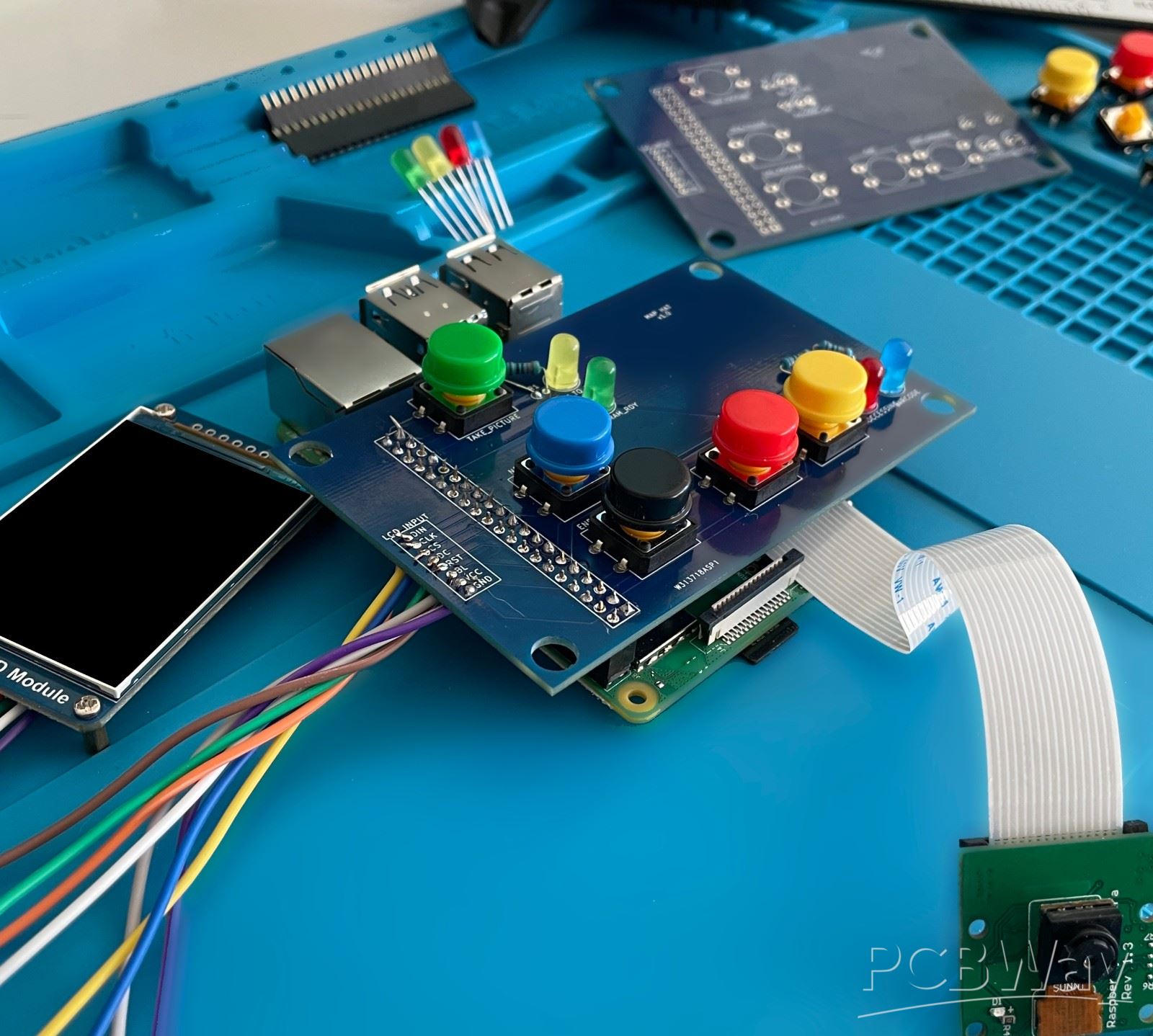 This was my first time designing and ordering my own custom PCB - despite no prior experience in electronics or PCB design. I was completely surprised by how perfect each of the PCBs ended up being (one of them I used as a test bed for trying to solder for the first time ever too). I have attached an image of the end result of the electronics - all buttons and LEDs working on the first try was an awesome experience. Thank you!