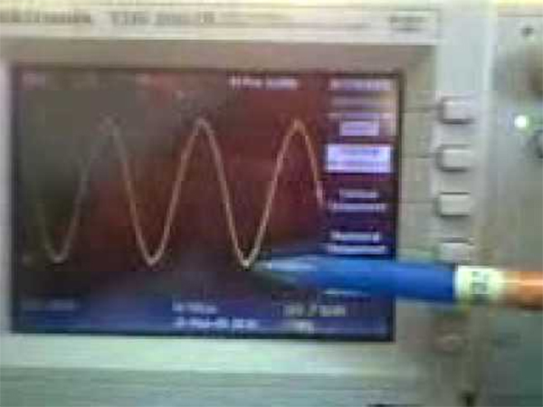 You can check sine wave output from DAC0832 module on CRO by connecting Channel probe of CRO at Vout and GND of DAC module. Fig 5 shows sine wave output. As we are providing 12 digital value, we are not getting super fine Sine wave, but by increasing values of Array, we can get better sine wave.