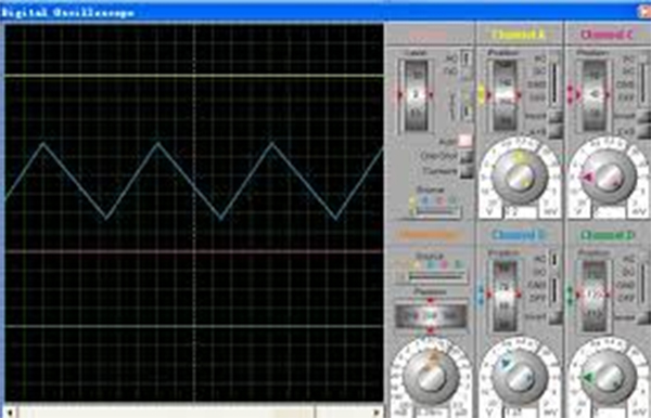 Statement and again testing for P1< 0xFF, as in first loop, we incremented and second loop we decremented value of P1, we are getting triangular waveform. Fig 6 shows triangular wave.