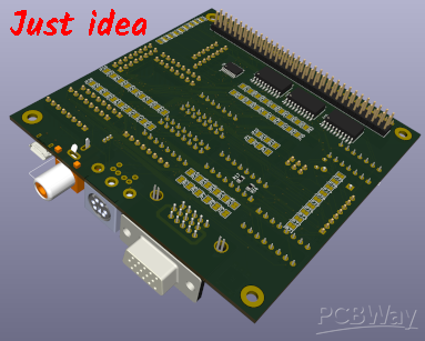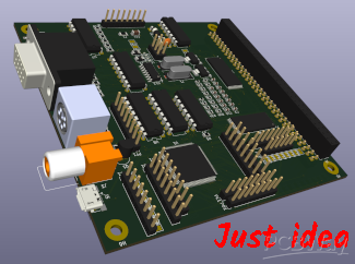 This is PCB for small Arduino based computer, capable of video output (VGA and RCA) and PS/2 keyboard input. It enables more modes of operatins - from simple breakout of atmega2560 with all pin available, USB serial may be added, also RTS/CTS flow controlls, output to VGA or RCA (which can be changed in runtime too), SDA card reading for file operations, extended RAM to 64kB is possible (and swap two banks) also it enables another 128kB RAM via port opperations and finally it can have gates for system bus and act as graphic card for another 8bit computer. It will also run specialised FORTH for HW testing and programming and as "operating system" At this time it is still under developement and testing and will take at least few month to be routinly usable in full configuration. Here is photo of prototype showing some FORTH screen, more photos will came after I will populate the card and make it work :)