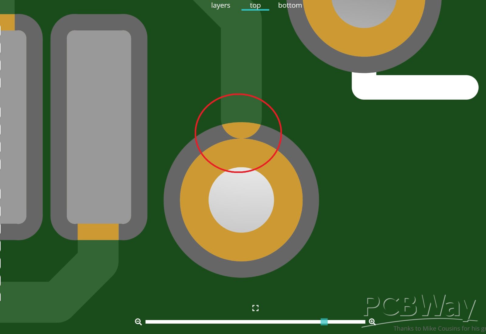 Hello Taylor, I need to check with you one matter. Our PCB designer made a mistake on the layout design, he did not connect properly a trace to the VIAS. Please check attached pictures, this is how the Gerber looks like, We need to know if during the production this mistake has been solved and the connection made. Do you have any production document that can show this? Thanks Ennio
