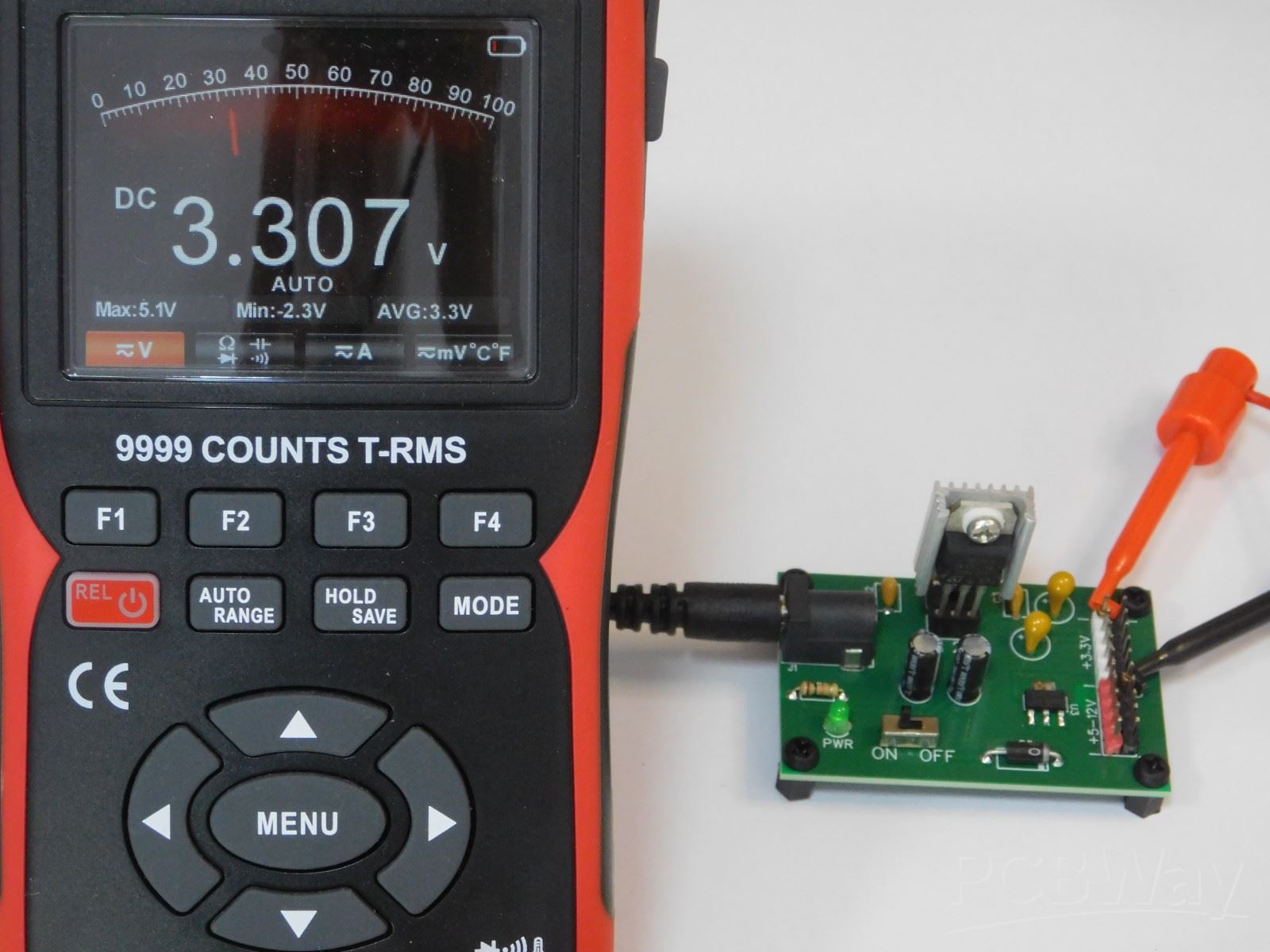 Here is Ver. 2 of my small Power Supply Module for hobbyist to use when powering small projects when experiment or creating a new design. A new feature on this version of the power supply is that it can also provide 3.3 volts in addition to one of the other voltages, which are 5, 6, 9, or 12 volts. Another feature is multiple output pins, as there is now five pins for 5 volts, five pins for 3.3 volts, and ten pins for ground. PCBWay did a 100% perfect job on manufacturing this PCB, the detail is perfect, and the board is 100% operational. Thank you again PCBWay for a great service. If you are looking for perfect PCBs fabricated, look no further than PCBWay, highly recommended!
