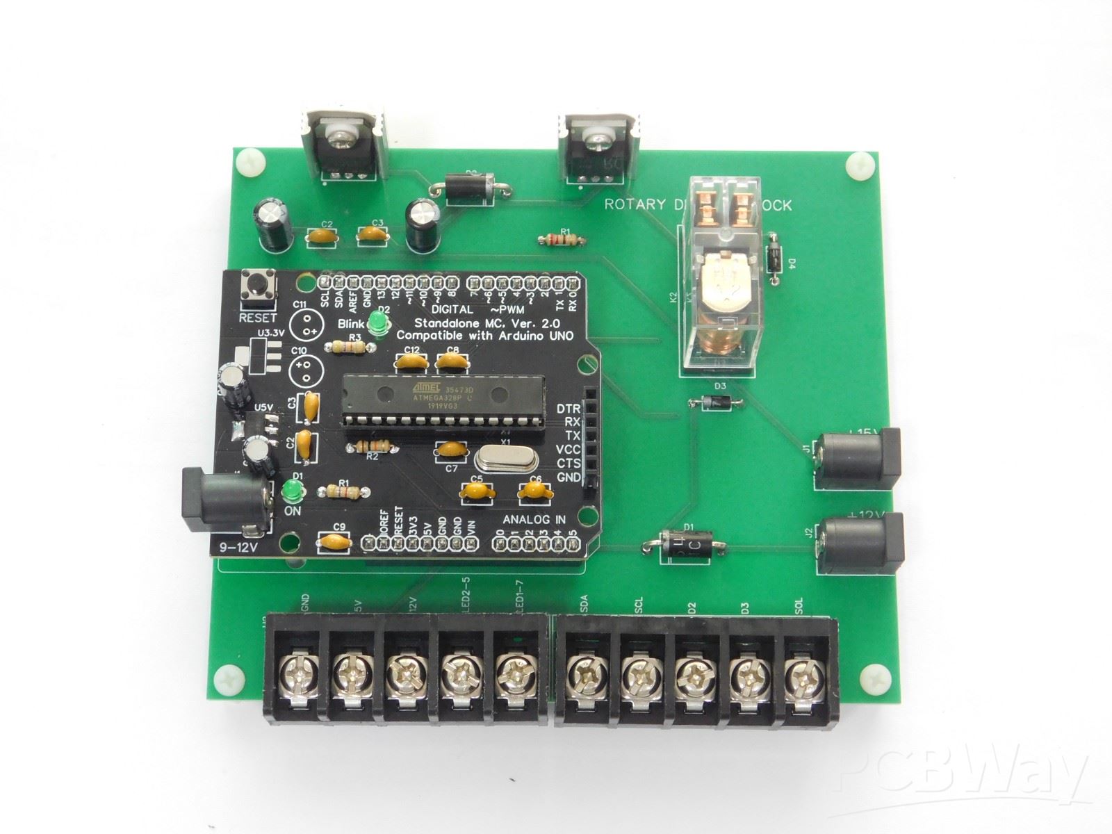 I used a telephone rotary dial with the numbers counted on an Arduino and displayed and displayed on an LCD module, which opens a relay to unlock the door when the correct code is entered. This board is the control board to which a Arduino UNO is mounted. The boards were received in perfect condition, packaging has always been 100% perfect with all my orders through PCBWay. Silkscreen was clear and accurate, overall, perfect PCBs as I specified. I cannot recommend PCBWay enough for PCB fabrication and professional service.