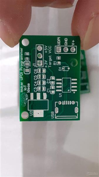 A small UPDI programmer with very few parts. As part of my attempt to find a replacement for the ATMEGA328P, new technology programmers are needed.. This is a simple circuit that I found online, and want to try it out to see how it performs. The PCB was well-made and true to my design. Thank you