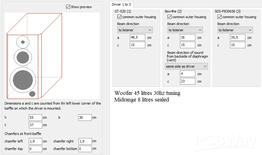 3 way passive crossover with good phase can use two sided PCB. There are two other alternative designs in other files for assembly