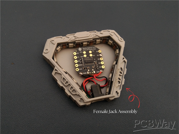 I placed the DC jack into its designated slot in the back part of the reactor. It fit just right, and to keep it firmly in place, I used a small drop of super glue. This keeps the jack secure while still maintaining a clean and sleek look.