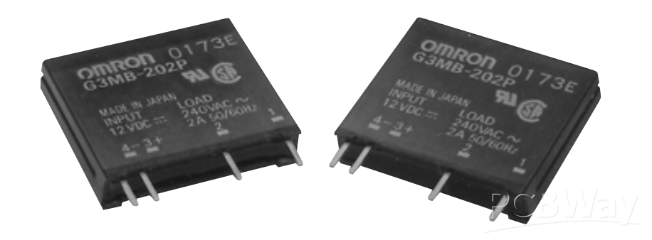 Low cost Subminiature PCB mounting 2 amp Single in-line package (SIP). Bottom is approximately 3 times smaller than G3M. Low cost “SIP” package switches up to 2A loads. Built in Snubber circuit and input resistor as option.