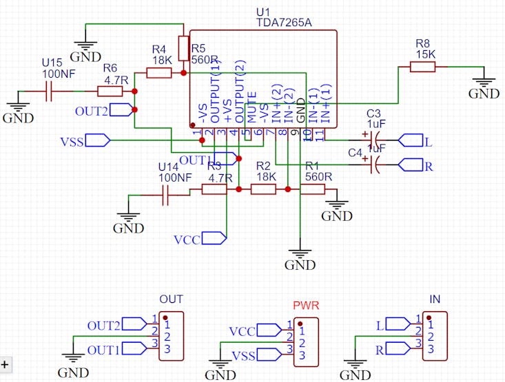 I used to design transistors amplifier but for a home system it is too big. Transistor amplifier are mostly used for high output and they are little bit noisy too. I need a super quite and HI-FI stereo circuit. Then I found the datasheet of TDA7265 audio amplifier IC.