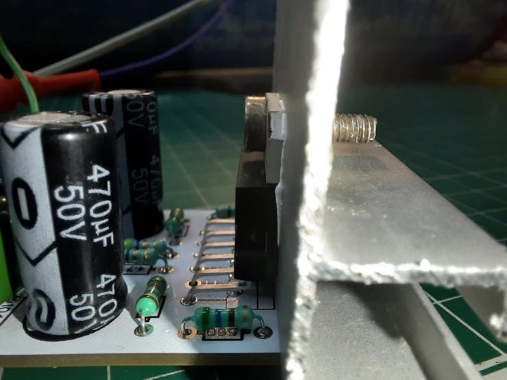Usually the heat sink, is depend on the area and thickness of aluminum. I am using a big 100mm heatsink with this single IC of thickness 2mm. The most important thing is that there should be no any space lest between the heatsink and IC. To transfer heat immediately from ic to heatsink, we need heatsink compound. Improper placement of heatsink will immediately burn the IC and components.