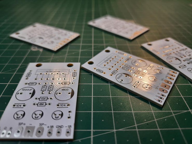 Our design only contains through hole components, DIP IC, resistors and capacitors. So first of all start with the IC and resistors, It is easy to place components after placing small sized resistors. Then move on Big capacitors and other circuitry.