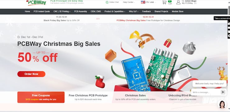 Are you worried about where to have such boards fabricated? Worry no more because PCBWay got you covered through their beautiful Christmas offers. Here you will get Free Coupons, a Free Christmas PCB Prototype with Up to a $20 discount each time, and Christmas Sales with Up to 50% off for PCB and assembly orders.
