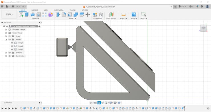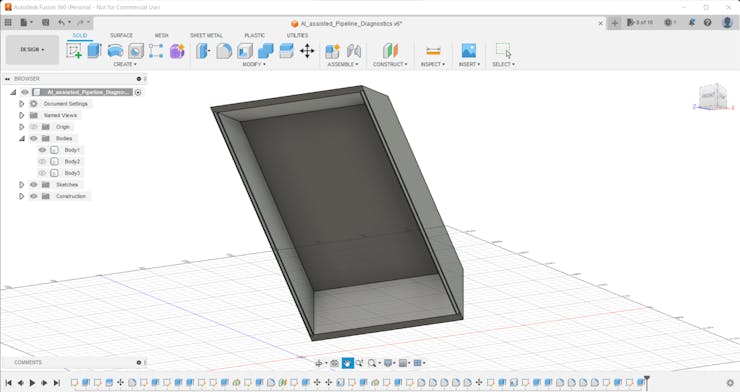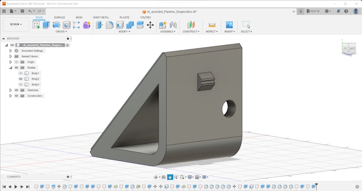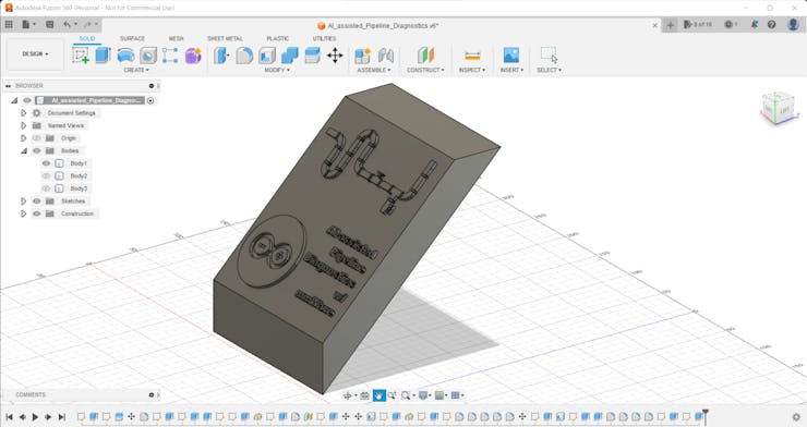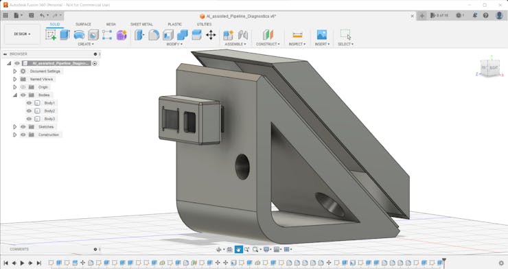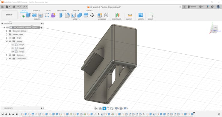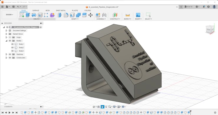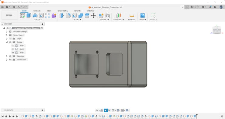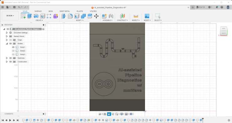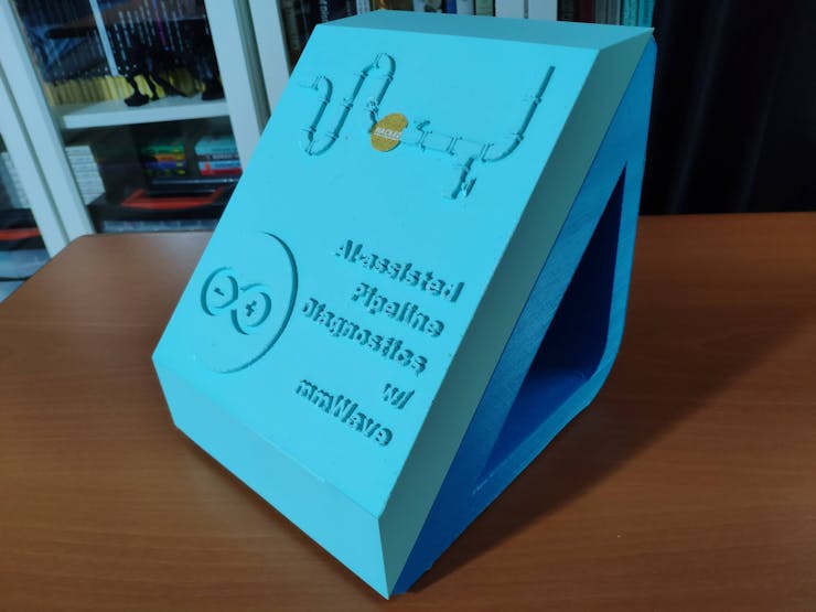Since I focused on building a user-friendly and accessible mechanism that collects mmWave data parameters and runs a neural network model to inform the user of the diagnosed pipeline defects via a PHP web application, I decided to design a rigid and compact case allowing the user to place the 60GHz mmWave module and position the built-in GC2145 camera on Nicla Vision effortlessly. To avoid overexposure to dust and prevent loose wire connections, I added a sliding front cover aligned proportionally to the diagonal top surface. Then, I designed a modular camera holder mountable to the back of the case via a circular snap-fit joint. Also, I decided to emboss pipe icons and the Arduino symbol on the sliding front cover to emphasize the edge pipeline diagnostic processes.