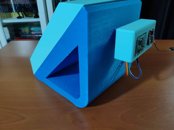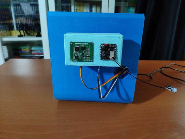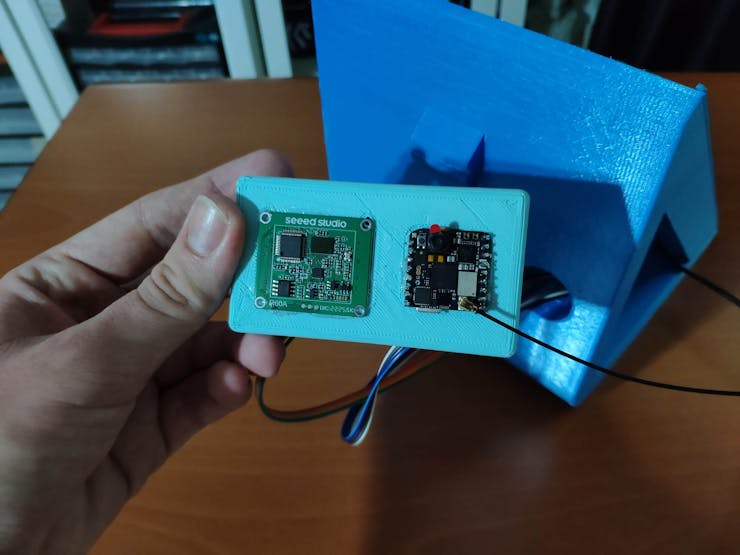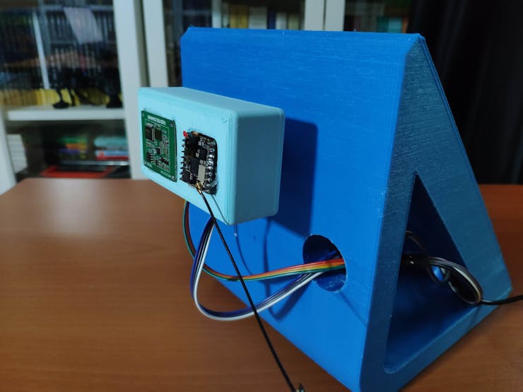 Lastly, to make the device as sturdy and compact as possible, I designed an emphasizing liquid-themed case with a sliding front cover and a modular camera holder providing a circular snap-fit joint (3D printable) for Nicla Vision and the 60GHz mmWave radar module.