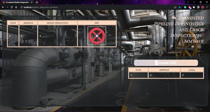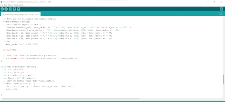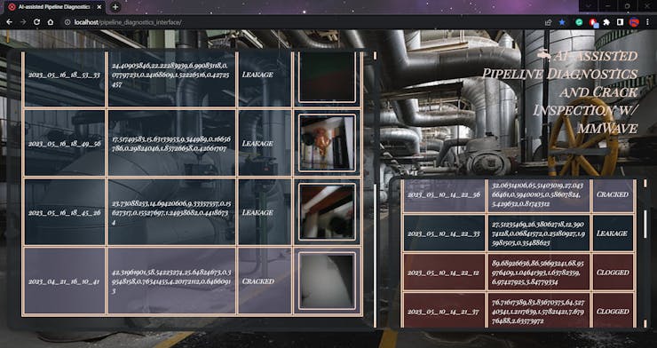 After perusing recent research papers on pipeline diagnostics based on vibrations, I noticed there are nearly no appliances focusing on collecting data from a mmWave radar module to extract data parameters, detecting potential pipeline defects, and providing real-time detection results with captured images of the deformed pipes for further examination. Therefore, I decided to build a budget-friendly and compact mechanism to diagnose pipeline defects with machine learning and inform the user of the model detection results with captured images of the deformed pipes simultaneously, in the hope of assisting businesses in keeping machines durable and stable by eliminating basic pipeline defects.