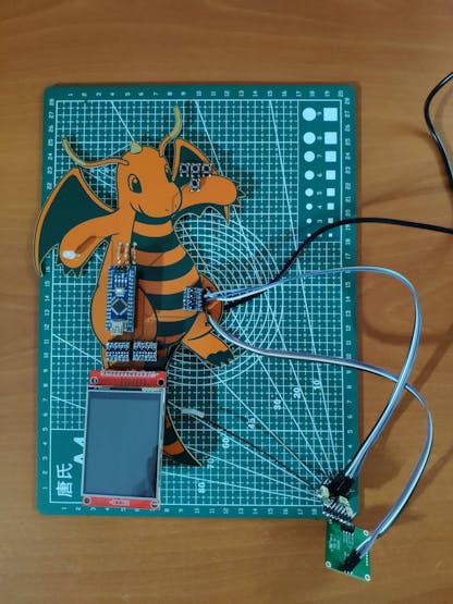 After completing soldering, I attached all remaining components to the Dragonite PCB via headers — Nicla Vision, Arduino Nano, 60GHz mmWave radar module, bi-directional logic level converters, and ILI9341 TFT LCD screen.