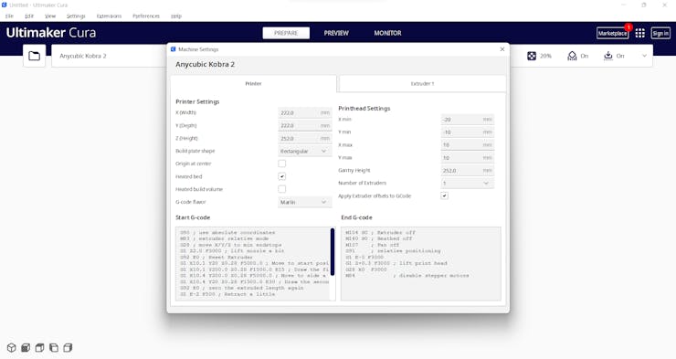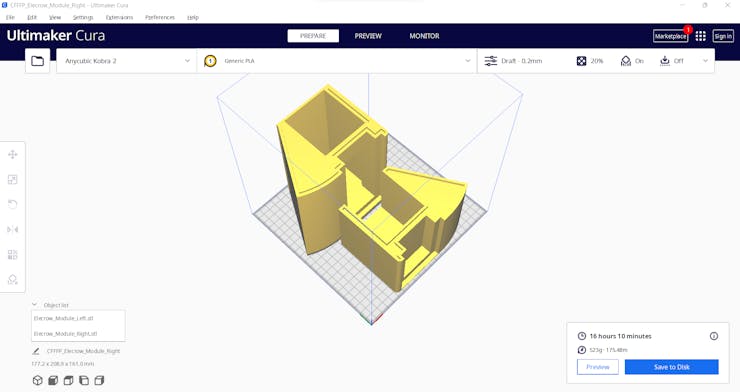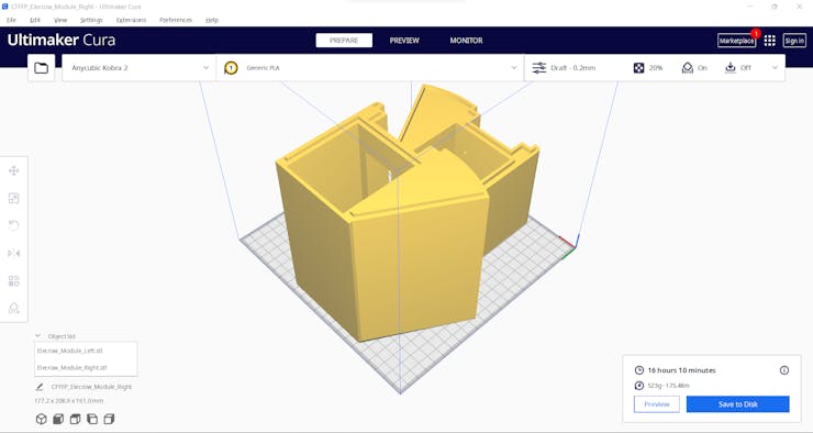 Then, I sliced all 3D models (STL files) in Ultimaker Cura.