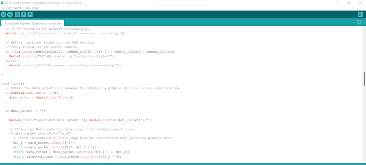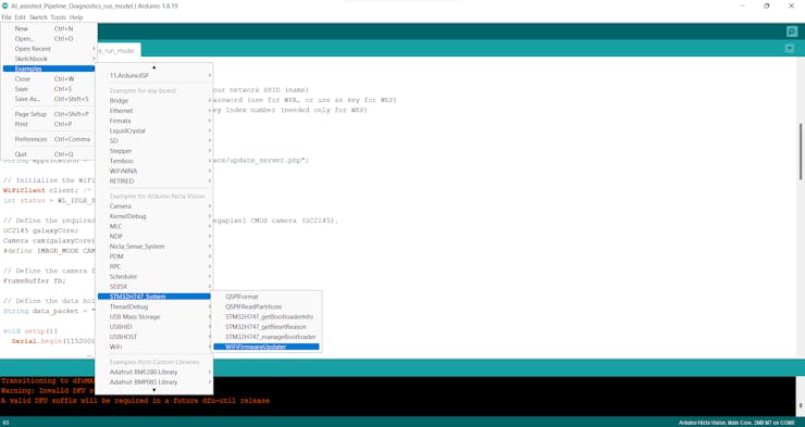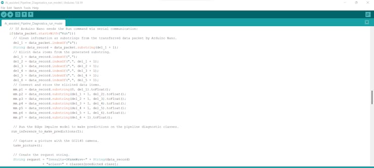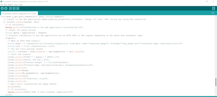 Step 8: Running the model on Nicla Vision to diagnose pipeline defects and transferring model results w/ captured images of the deformed pipes via POST requests