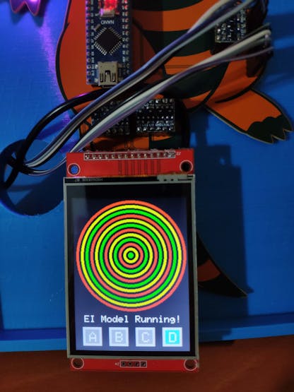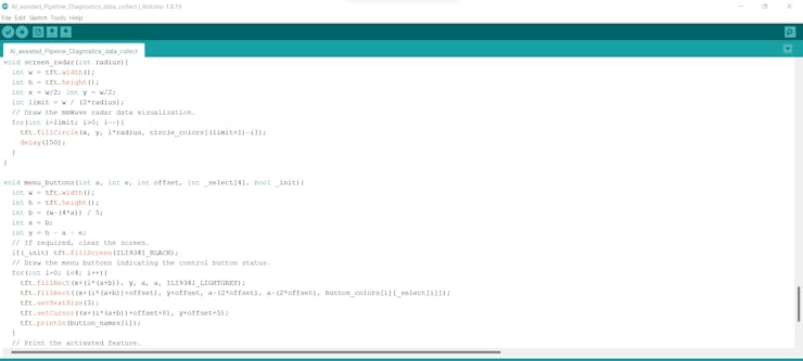 I utilized the ILI9341 TFT screen to display ongoing operations and visualize the extracted mmWave data parameters by creating a simple radar indicator. Then, I added four control buttons to transfer the collected data parameters and user commands to Nicla Vision via serial communication. Also, I added an RGB LED to inform the user of the device status, denoting serial communication and data collection success.