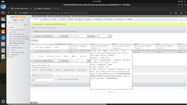 🍔 🚗 🛎️ 📶 After obtaining the LoRa-transmitted order tag from the kiosk customer endpoint via the PHP-MQTT client, the restaurant web application processes the order tag to initiate the menu preparation process.