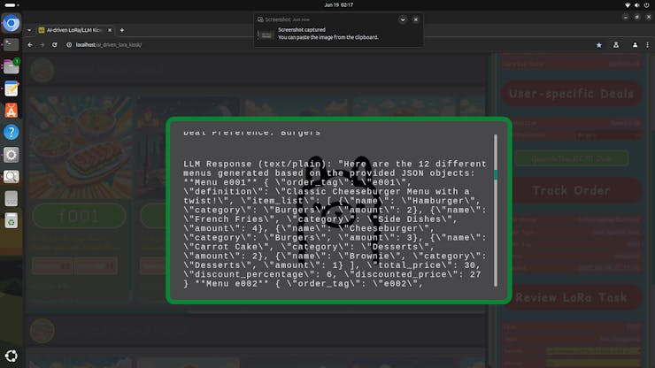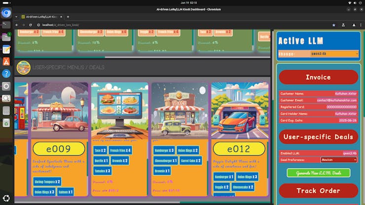 As opposed to the usual drive-through restaurant customer experience, in accordance with my AI-powered solutions, I concentrated on providing customers with the autonomy to generate user-specific menus/deals based on their preferences by employing different large language models (LLMs) enabled by the restaurant web application. In this regard, the web application allows the selected LLM to access customer preferences, available food item information (name, price, etc.), and food categories from the database to generate user-specific menus/deals. While producing menus/deals, the selected LLM determines the menu theme, description, the offered food item list, and the applied discount percentage.