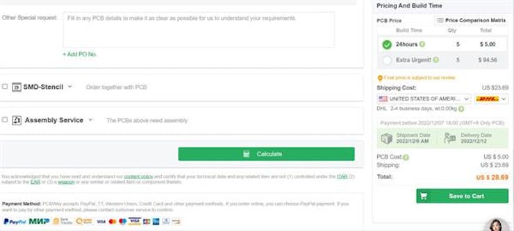 Pay for your order through online payment platforms provided by PCBway, then sit back and wait for your project to be submitted within the next week.