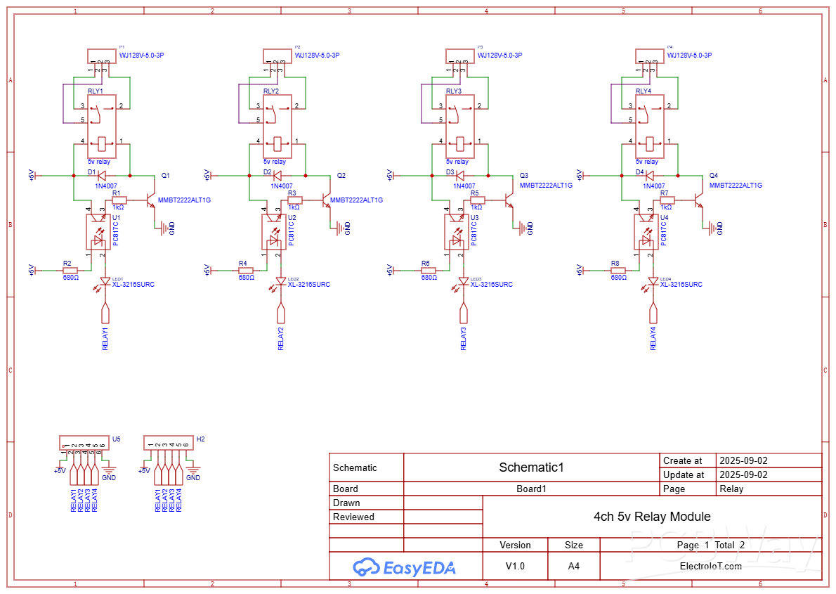 ✅ Status LEDs for each relay with optimized 680Ω resistor (brighter visibility)