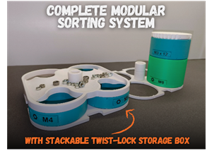 Complete Modular Sorting System with Stackable Twist-Lock Storage Box