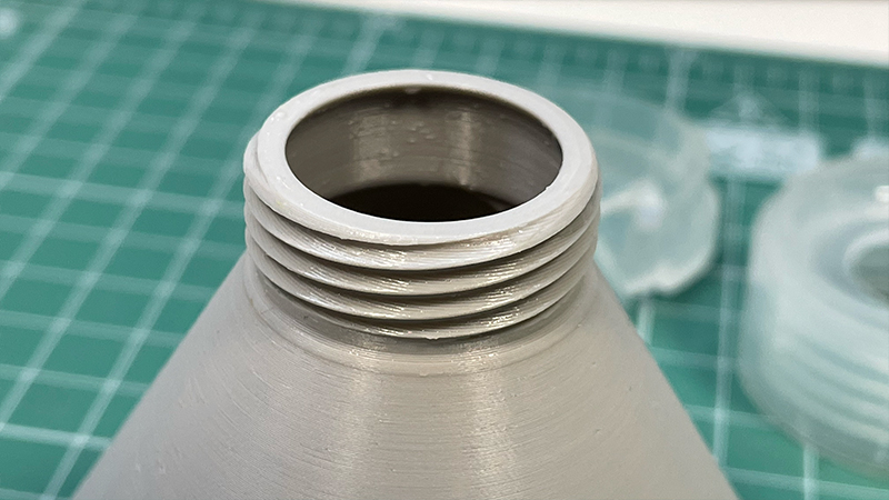 I used two types of PETG: regular and high-speed. The high-speed one turned out to be less airtight, while the regular one was perfect. For easier lid screwing, I designed a triple-start thread with a large pitch. The lid was printed with a 0.08 mm layer (0.4 mm nozzle), and the bottle with a 0.12 mm layer. The seam was set to random, making it invisible to the eye and only slightly noticeable to the touch.